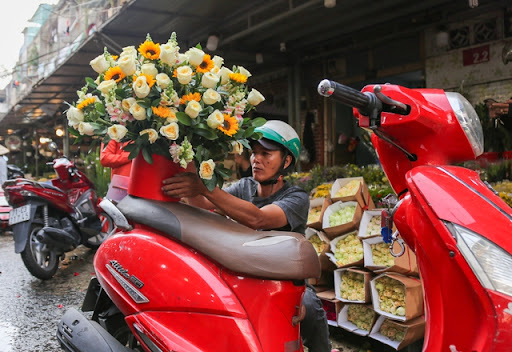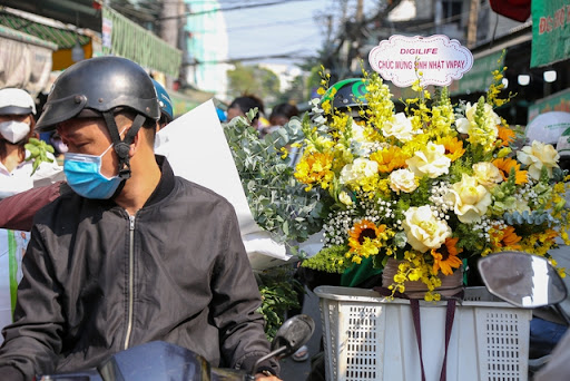 Shipper hoạt động ra vào liên tục chợ hoa để giao hoa cho khách